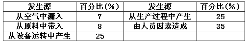表6 潔凈室內(nèi)粒子來(lái)源分析