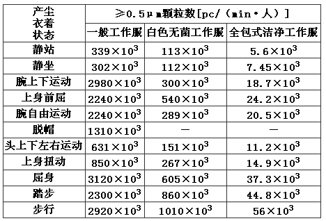 表5 不同衣著、不同動(dòng)作時(shí)的人體產(chǎn)塵