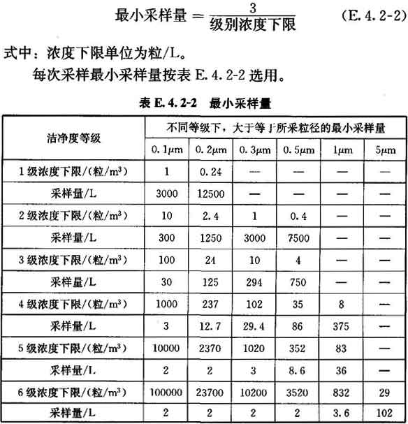 4 每點(diǎn)采樣1次,如工藝無(wú)特殊要求,每次采樣量應(yīng)大于等于表E.8.4推薦的浮游菌最小采樣量。