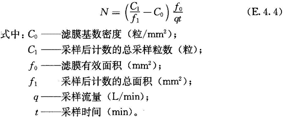 3)測(cè)定之前,必須先測(cè)出使用的同一批濾膜的基數(shù)密度,最后的計(jì)數(shù)濃度由下式得出: