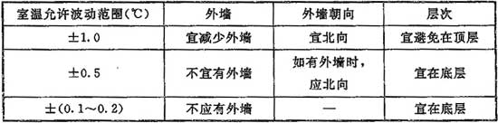室溫允許波動范圍(℃) | 換氣次數(shù)(次/h) | 備注 |