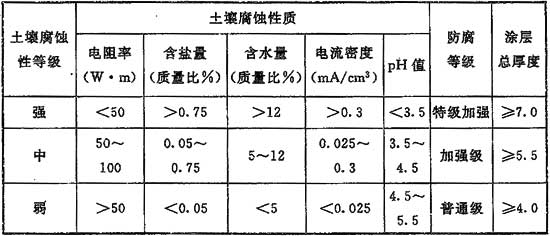 表13 土壤腐蝕性等級及防腐涂料等級