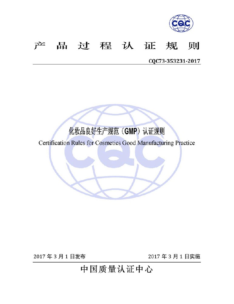 轉(zhuǎn)自:中國(guó)質(zhì)量認(rèn)證中心:化妝品良好生產(chǎn)規(guī)范認(rèn)證(GMPC)